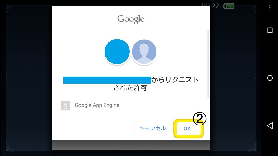 ②「Googleアカウント」の認証画面にて「OK」をご選択いただくことで、以前のアカウントでログインできます。