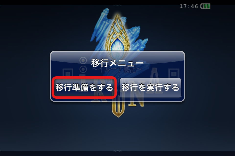 移行コードを入力して「移行実行」する際 : プレイ中のゲームデータに対し、上書きする形で移行が実行されます。
